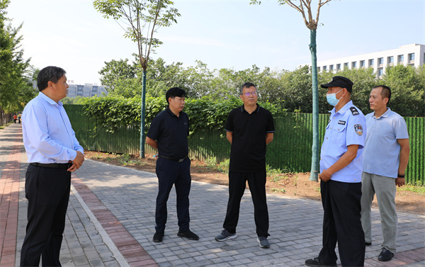 检查中,重点对南北校区新生报到通道及大门教职工车辆和人员出入、疫情防控、人员配备等进行了专项检查督导,现场办公,协调和解决新生报到期间的遇到的各方面问题。
